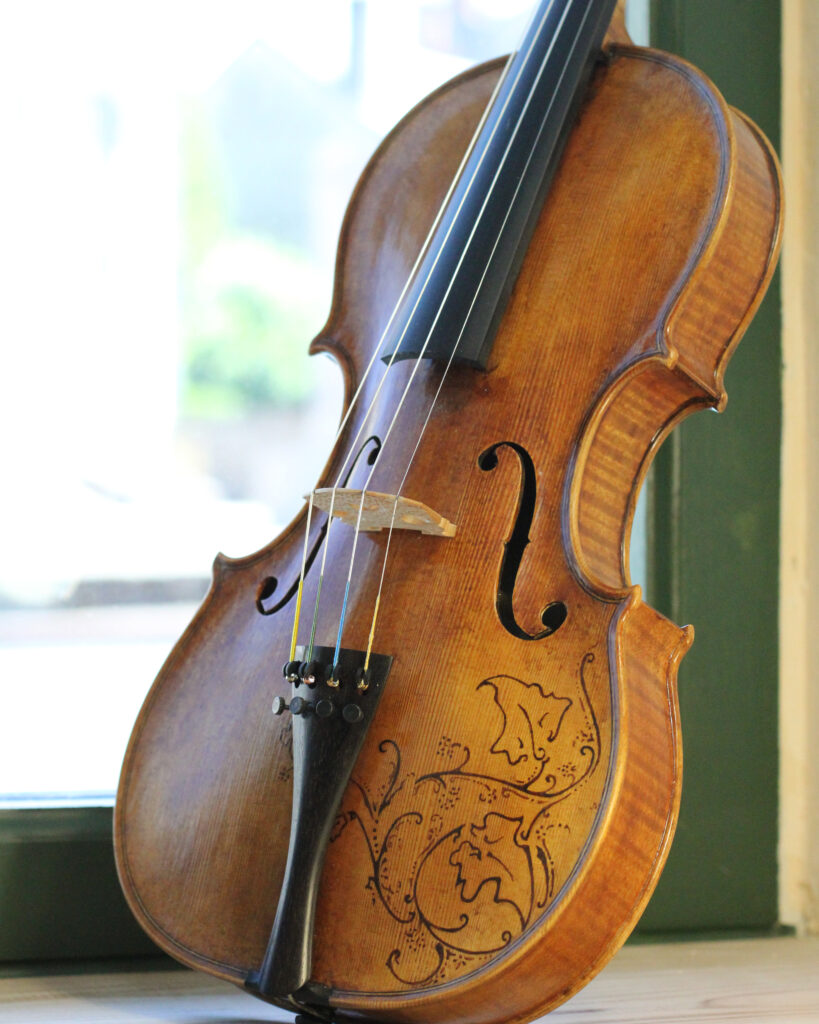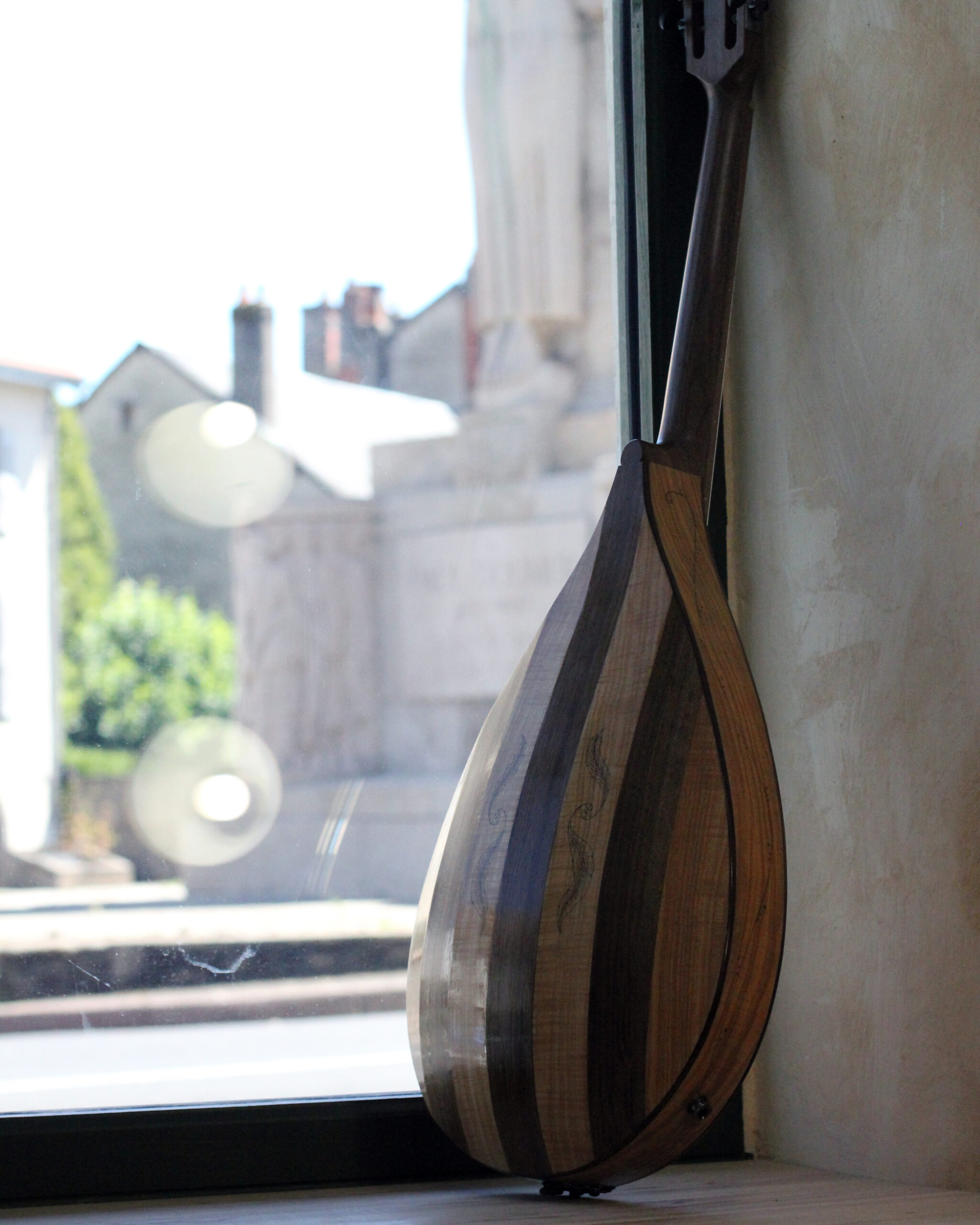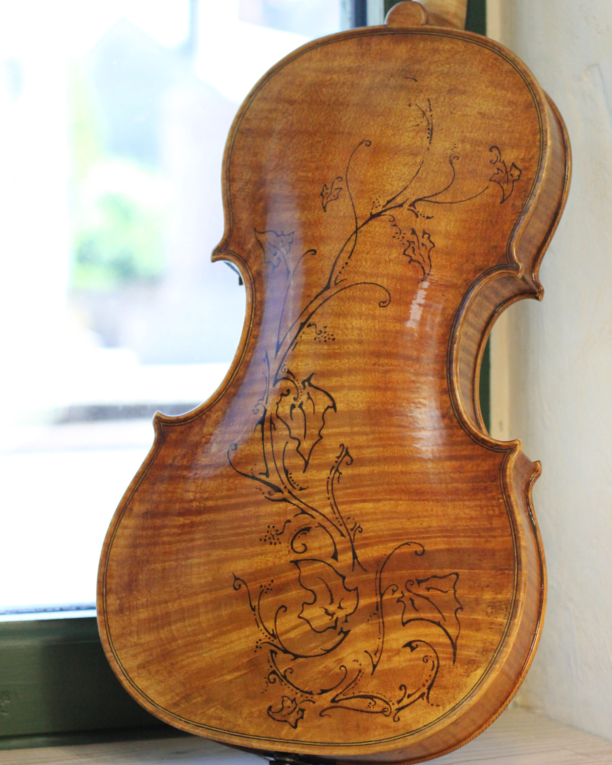 En coopération avec le luthier Jean Gourichon, qui a réalisé le décor peint sur les éclisses, ainsi que la sculpture de rosace est de chevalet.